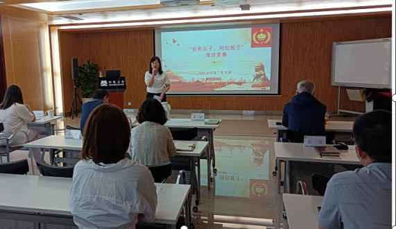 5月18日,中机合作第二党支部举办争当“业务尖子、岗位能手”演讲比赛。