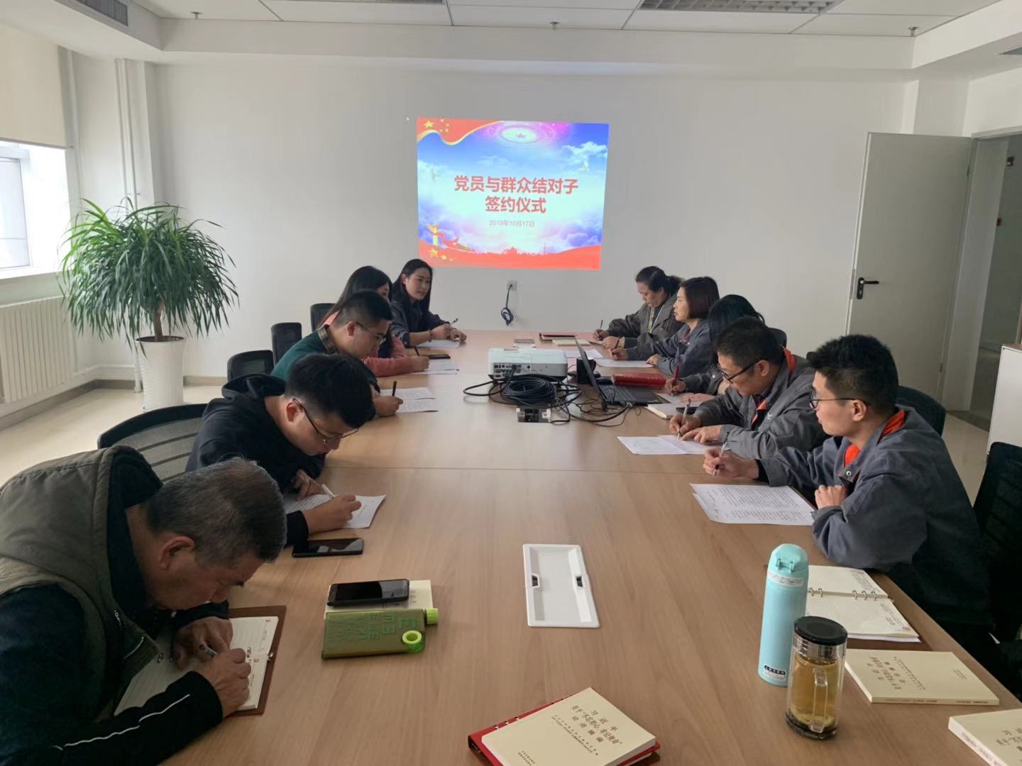 为扎实推进“不忘初心 牢记使命”第二批主题教育活动,引导广大党员干事创业,敢于担当,发挥先锋模范作用,公司组织开展了“党员与群众结对子”活动。10月16日-20日,各基层党支部组织优秀党员、支委与群众结对子签约仪式。