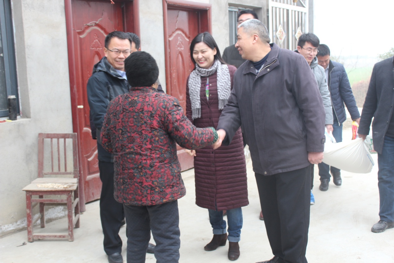 2019年1月7日至1月8日,轴研科技纪委书记罗勇带领轴研所党委副书记、纪委书记江玮及相关同志一行五人赴信阳市淮滨县三空桥乡刘圩村,对该村的25个贫困户及18位贫困村民进行扶贫慰问。