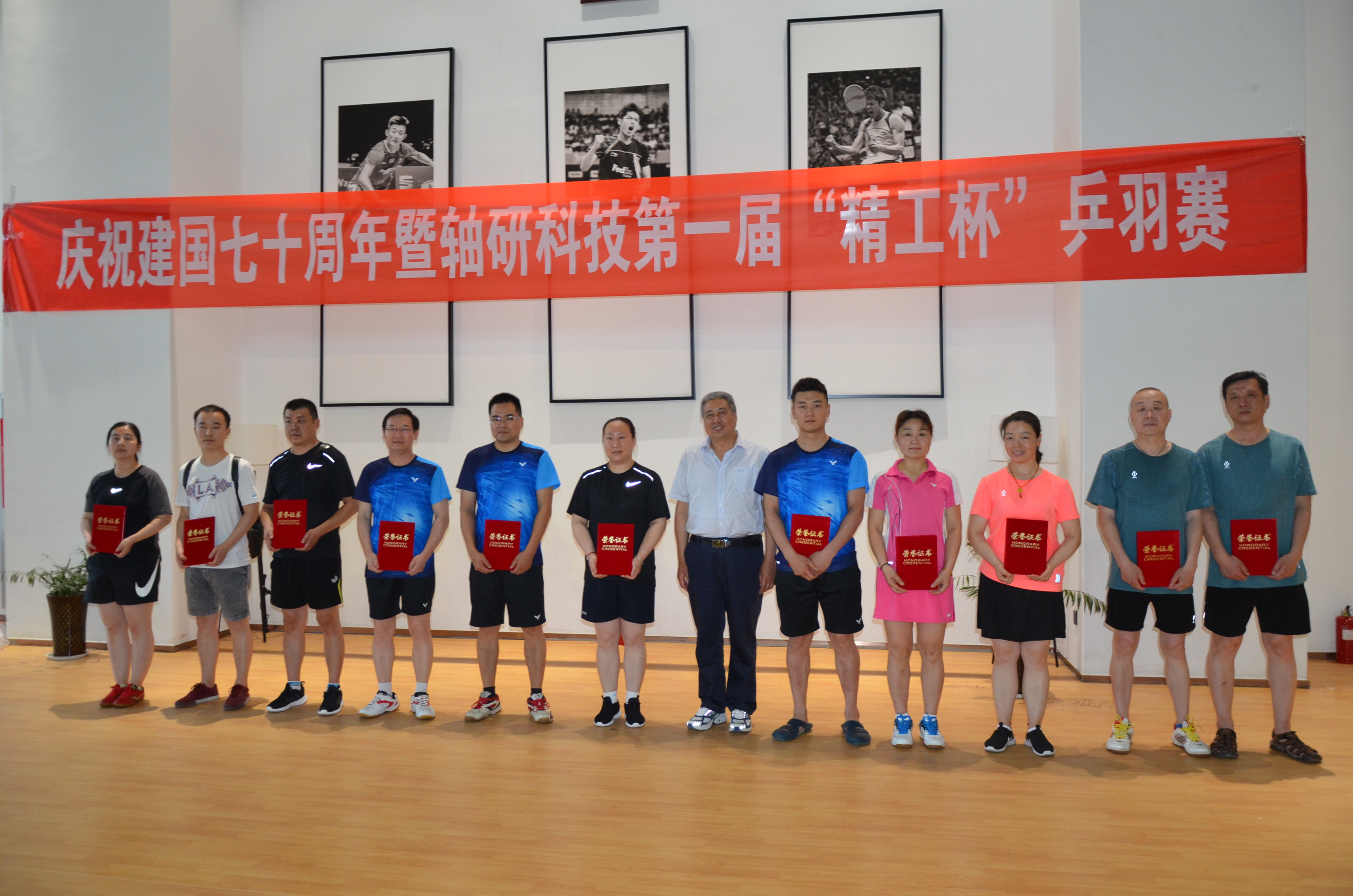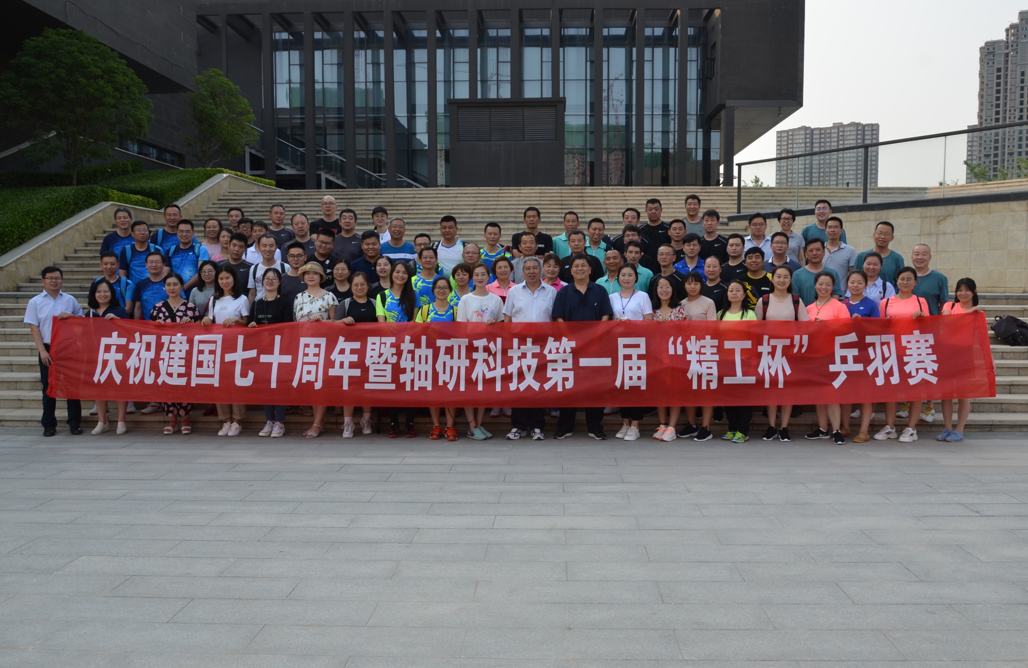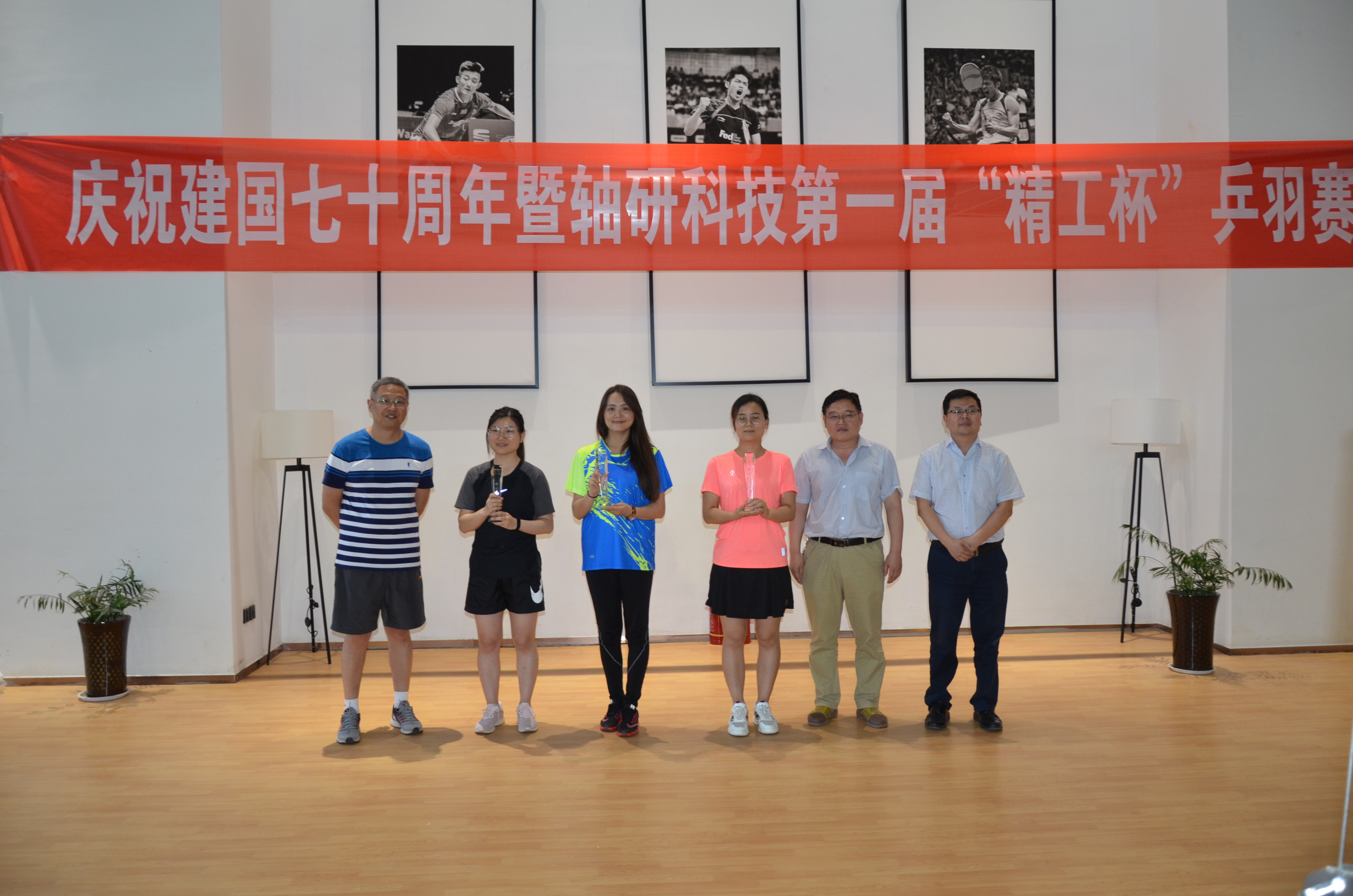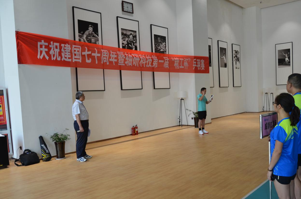 为庆祝中华人民共和国建国70周年,贯彻国家《全民健身计划》,2019年6月14日,由轴研科技主办、白鸽公司承办的“第一届精工杯乒羽赛”顺利开赛。本次比赛设置乒乓球和羽毛球男单、女单,男子双打、混双项目,共有轴研科技总部、轴研所、中机合作、三磨所、成都工具所、白鸽公司6家单位11支参赛队100余人参加,本着友谊第一,比赛第二的原则,在全体工作人员和各参赛队员的共同努力下,比赛取得了圆满成功。