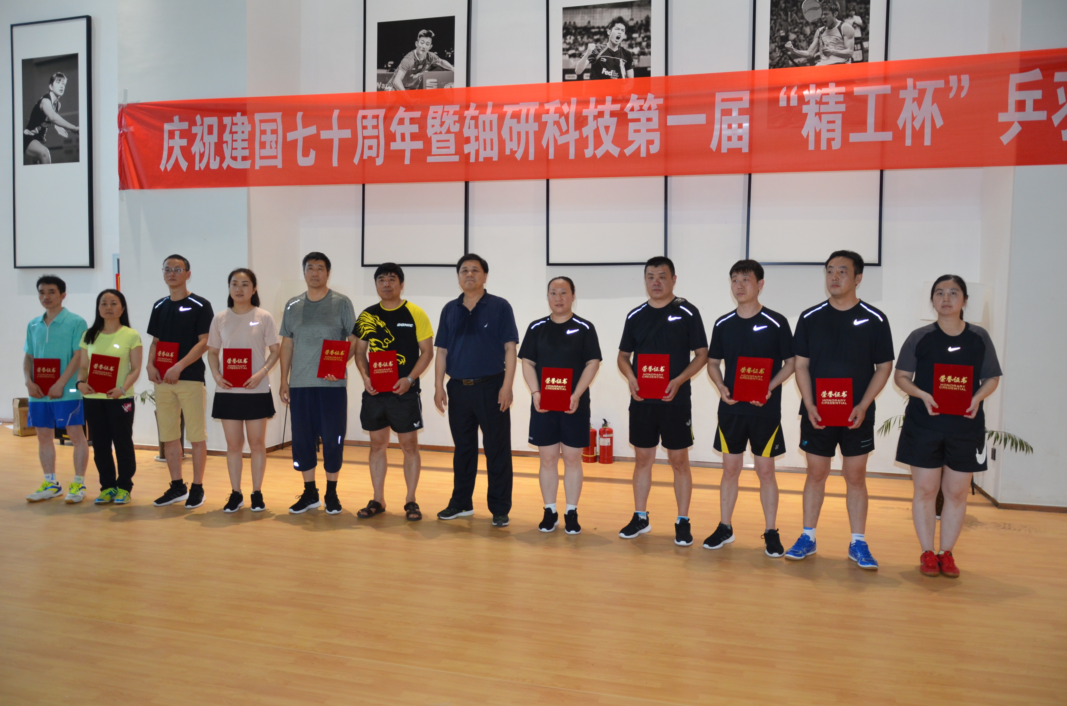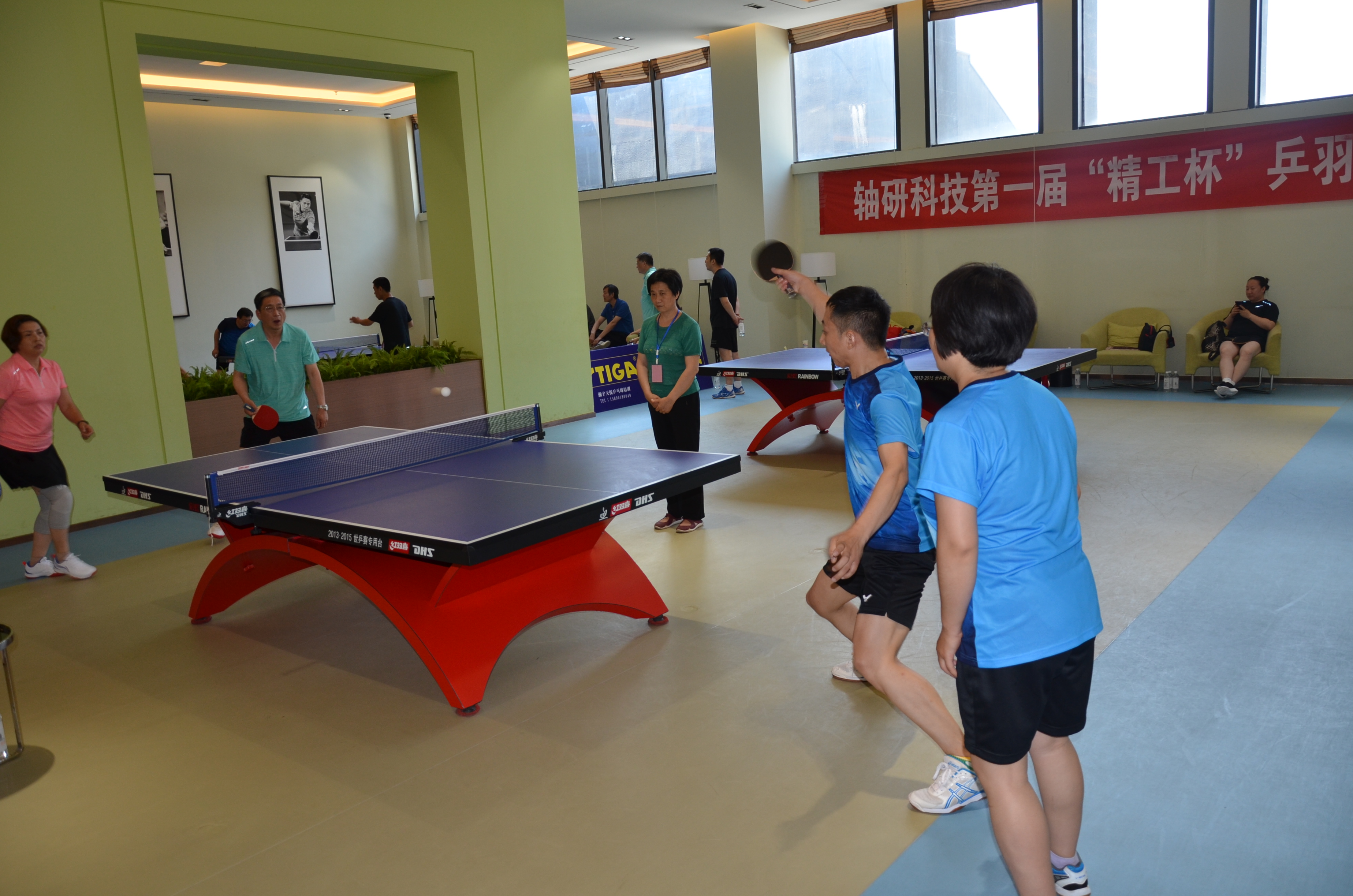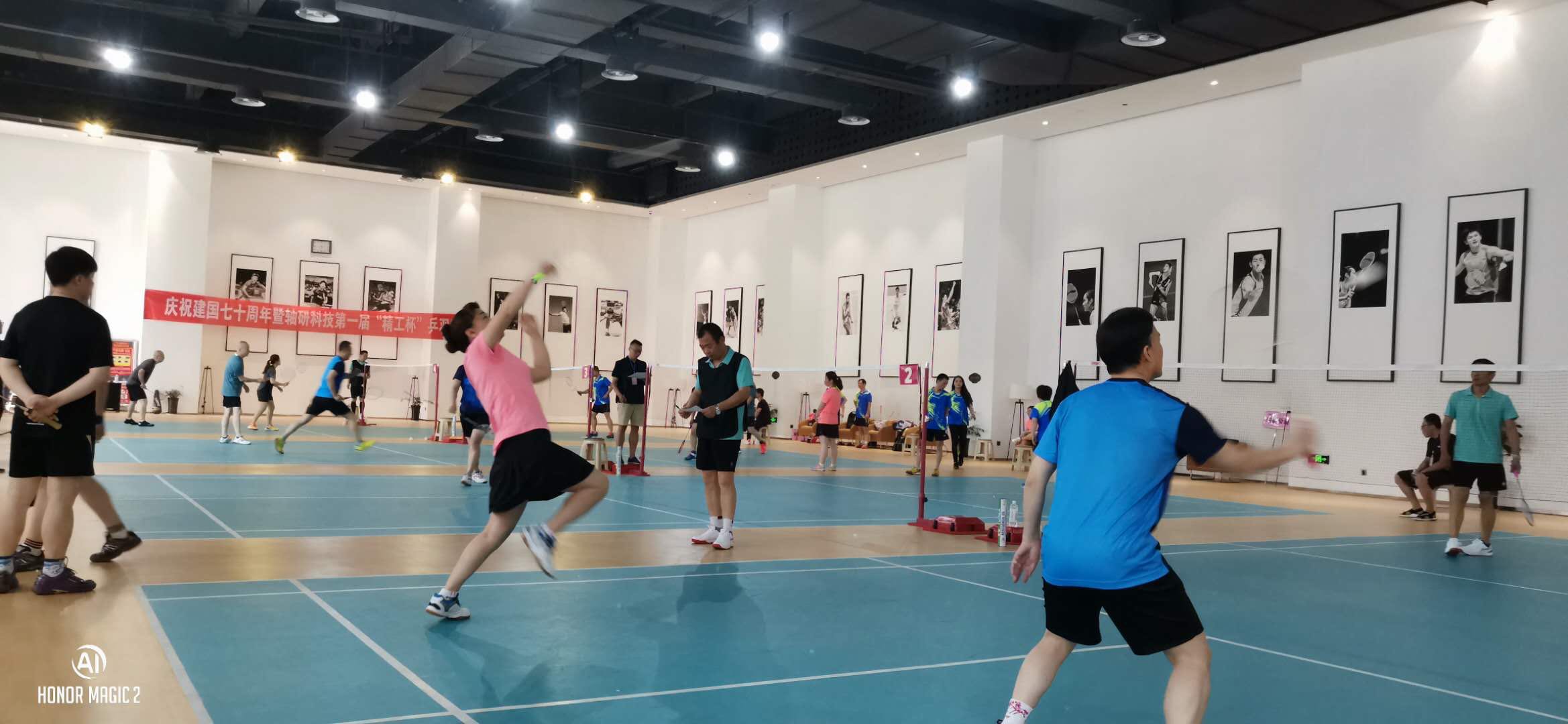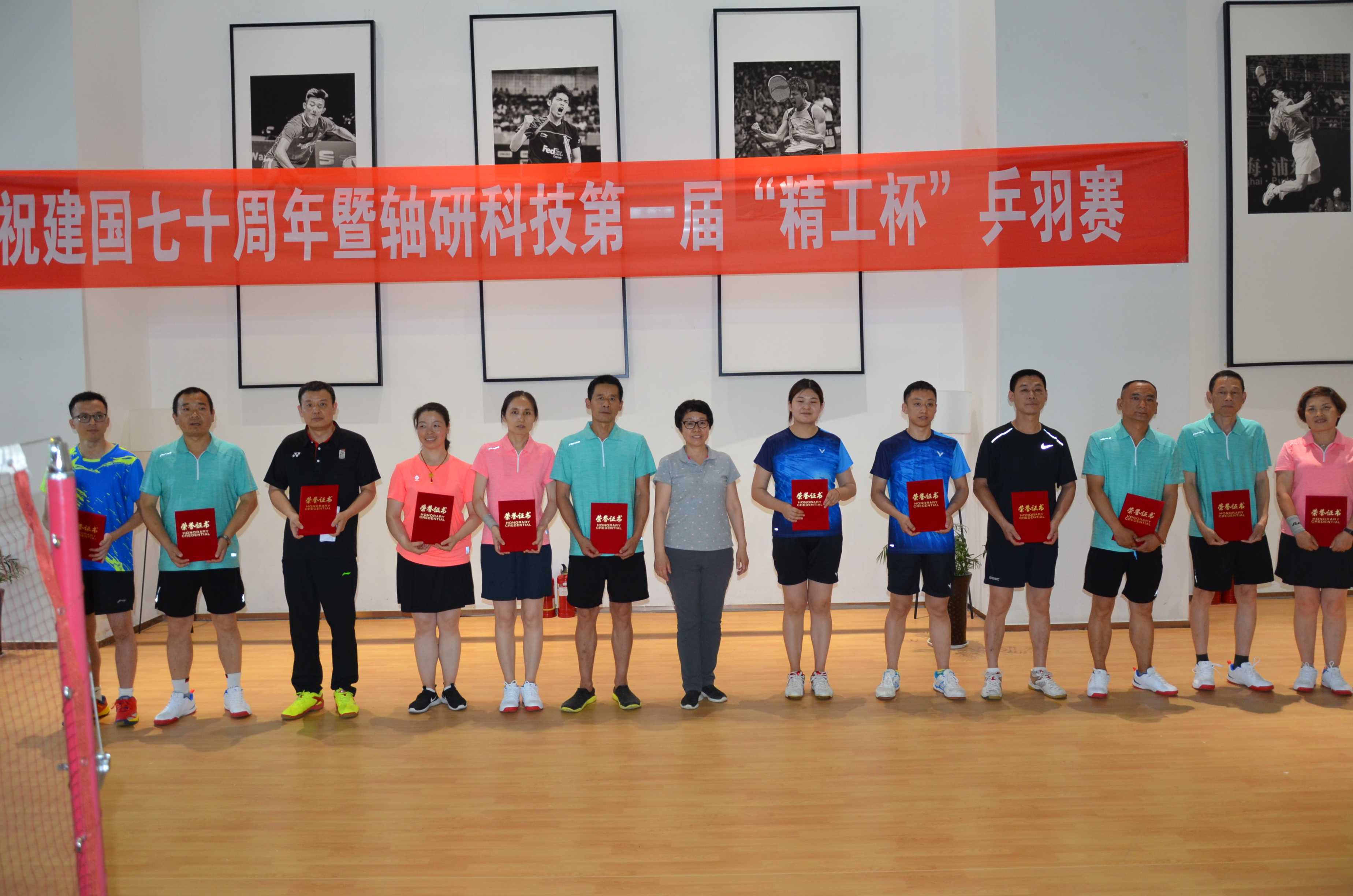 为庆祝中华人民共和国建国70周年,贯彻国家《全民健身计划》,2019年6月14日,由轴研科技主办、白鸽公司承办的“第一届精工杯乒羽赛”顺利开赛。本次比赛设置乒乓球和羽毛球男单、女单,男子双打、混双项目,共有轴研科技总部、轴研所、中机合作、三磨所、成都工具所、白鸽公司6家单位11支参赛队100余人参加,本着友谊第一,比赛第二的原则,在全体工作人员和各参赛队员的共同努力下,比赛取得了圆满成功。