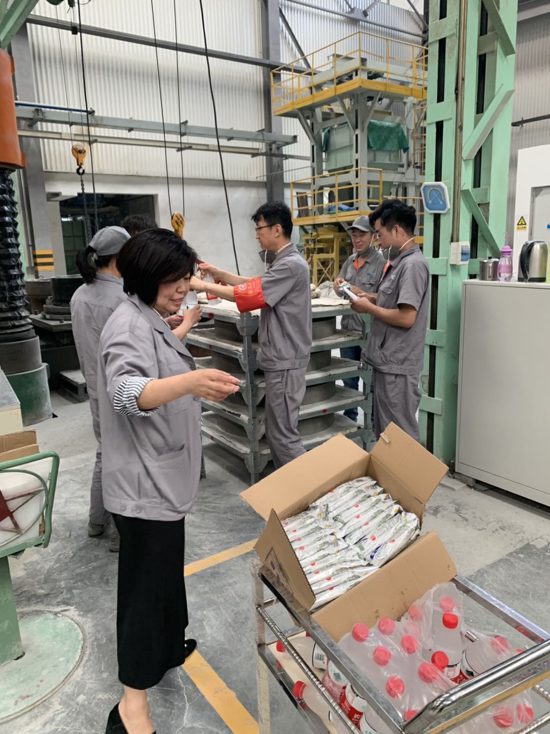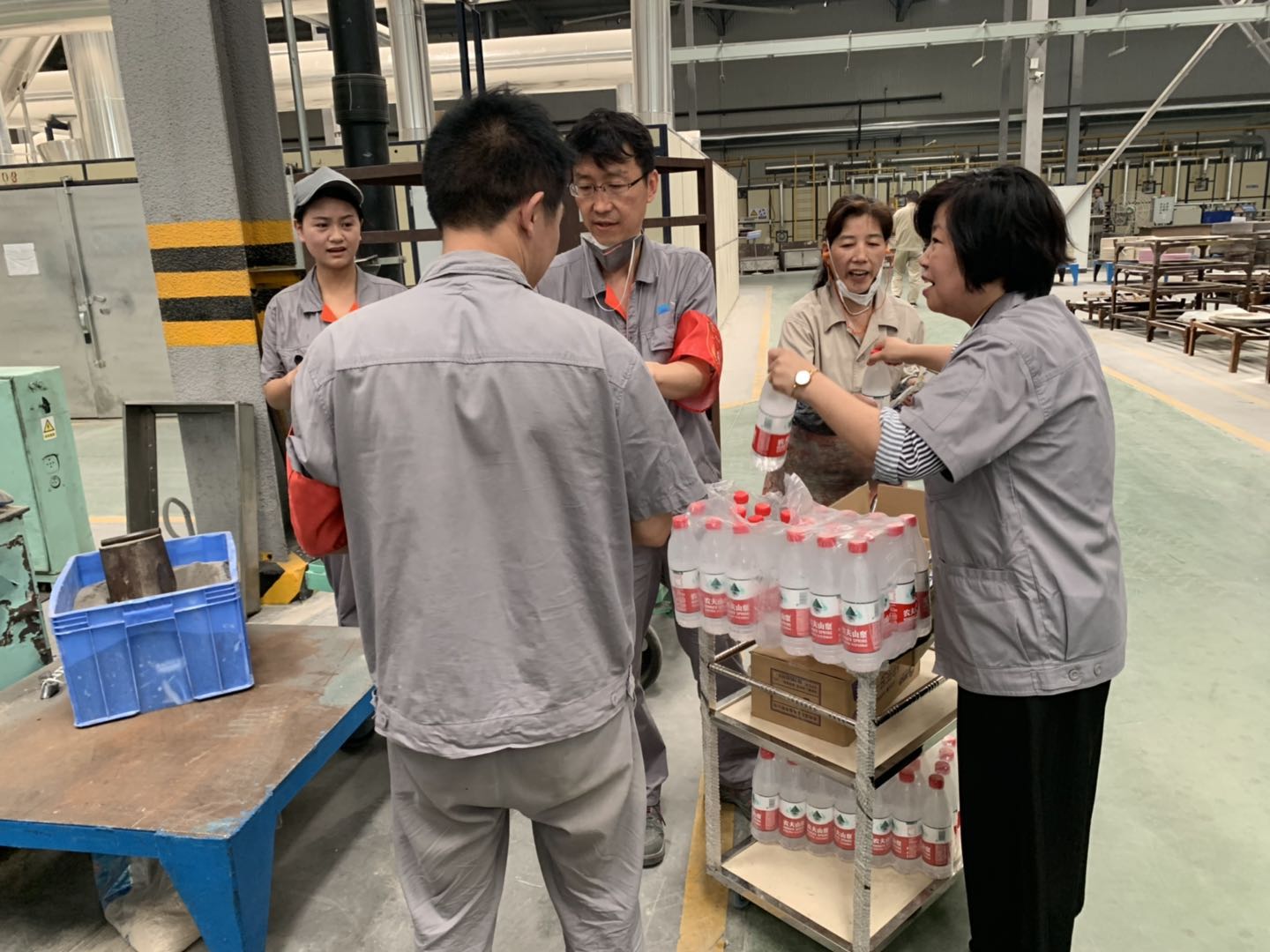 入夏以来,气温不断高升,车间作业,挥汗如雨。公司领导高度重视防暑降温工作,工会委员会结合“安全月”活动制定了“夏送清凉”方案。为体现公司“以人为本”的企业文化理念,保障员工的身体健康,确保安全生产,6月19日,公司党委书记、总经理洪凌带领党群工作部相关同志深入一线为员工“送清凉”,拉开了2019年“夏送清凉”活动的序幕。