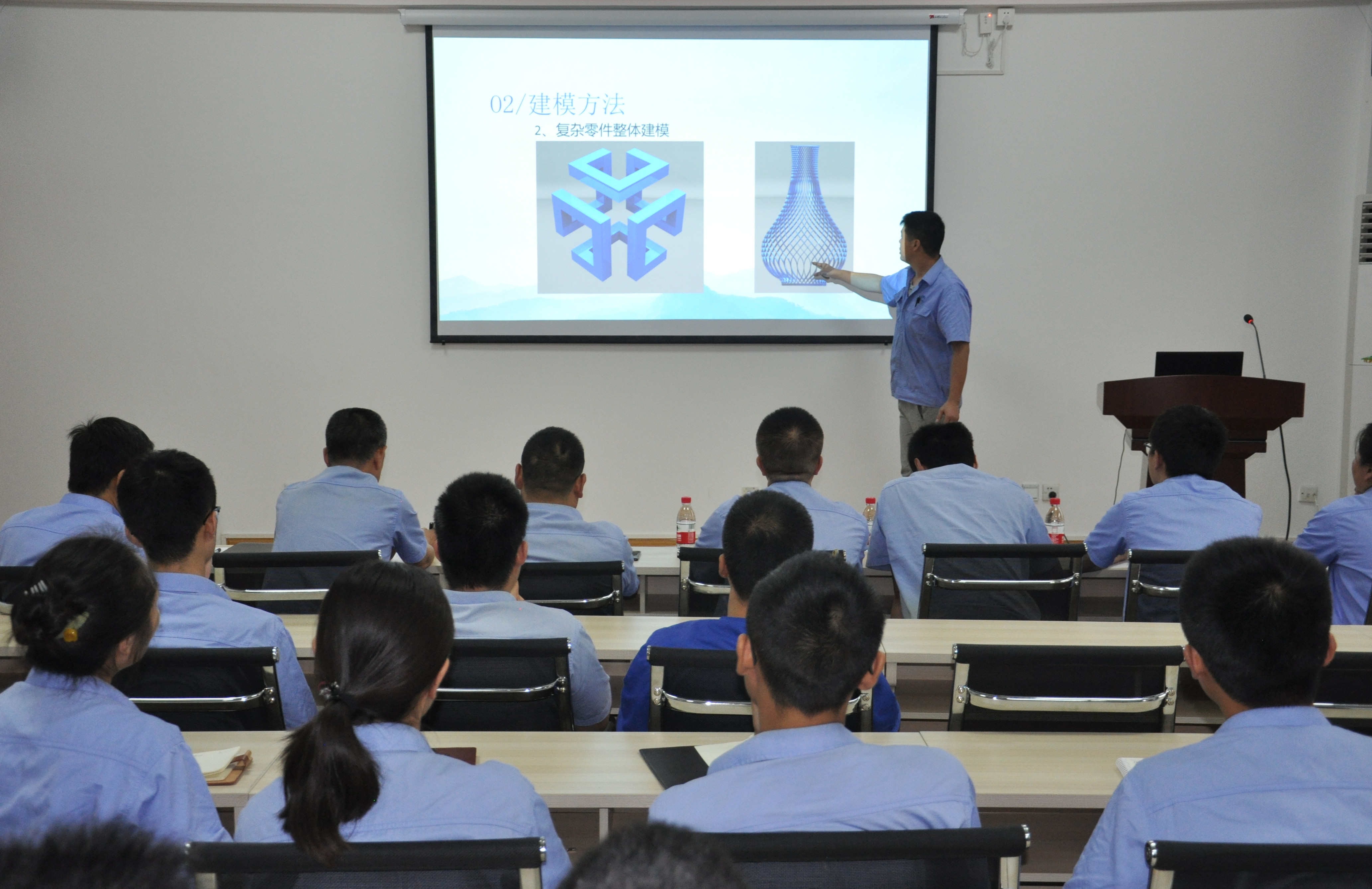 三维软件建模当前普遍应用于工业设计、建筑设计、游戏动画等不同领域,公司各产业部门根据机械产品设计的需要,目前主要使用UG、Solidworks、PRO/E等三维软件。此次软件建模大赛,主要考核参赛人员的学习能力和实践能力,要求认真学习建模相关知识点,并在规定时间内完成特定图形的绘制和计算,包括公式应用、简单建模、曲线曲面建模、复杂建模等环节,同时围绕实际应用案例、趣味绘图、题目解析等方面以PPT形式开展了现场交流分享。由公司评审组从图形的准确性、协调性、计算方法、绘制精度、分享效应等方面进行综合评审。