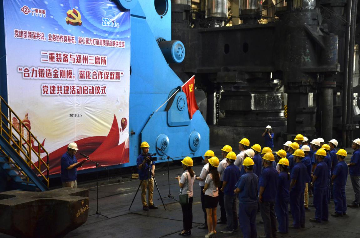 为进一步贯彻落实“中央企业基层党建推进年”活动要求,切实以党建质量提升助力生产经营的良好发展。7月5日上午,郑州三磨所党委与二重装备铸锻公司党委以“合力锻造金刚模,深化合作促双赢”为主题,隆重举行党建共建活动启动仪式。国机重装副总经理,二重装备党委书记、董事长闫杰,轴研科技总经理助理,三磨所党委书记、董事长闫宁,双方主要领导、党务工作者、党员代表、业务骨干等40余人参加了此次活动。