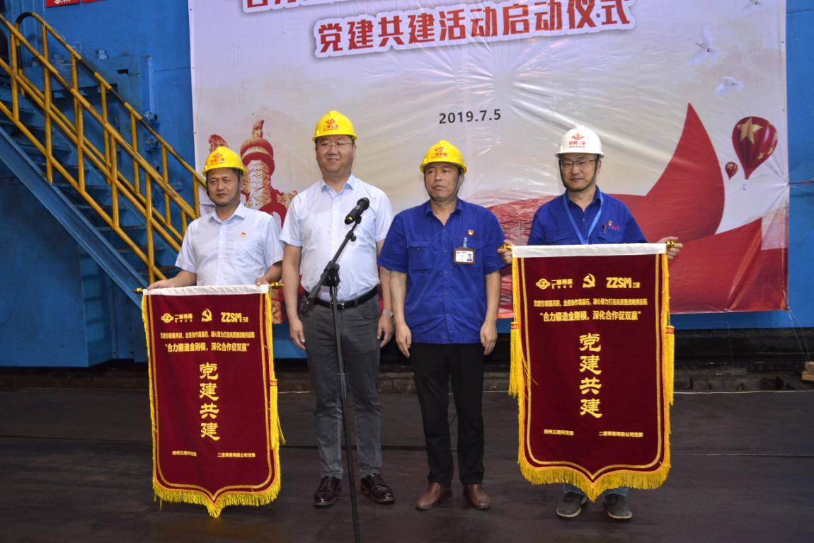 闫杰同志和闫宁同志分别为三磨所党委和铸锻公司党委授旗。铸锻公司党委书记范林琦和三磨所党委副书记、纪委书记王伟涛分别就如何开展好党建共建活动作了承诺发言。双方表示将以此次活动作为增进友谊、促进合作的桥梁,掀开二重装备铸锻公司与郑州三磨所合作的新篇章。仪式结束后,参观了二重装备铸锻公司生产现场,并在锻造厂党总支锻造党支部活动室与铸锻公司党委、锻造党支部就党建工作进行了交流研讨。