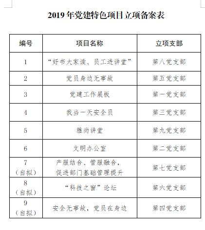 抓实品牌创建。加强党建品牌创建工作组织领导,明确支部书记为项目负责人,在项目选树阶段,各党支部通过召开支部党员大会,组织党员讨论,集思广益,认真总结提炼本支部党建工作的好做法、好经验,结合支部特色,明确项目名称,制定实施方案;在项目申报阶段,公司党委对各支部上报的党建项目及方案进行审查,对“党味”不浓厚、主题不突出、内容无特色的要求重新申报,并结合党建工作考核,对支部特色项目开展情况进行督促检查。