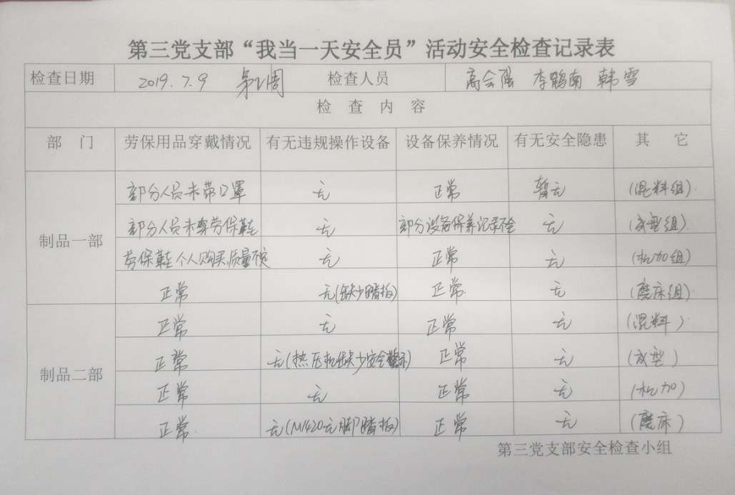 (第三党支部安全检查记录表)