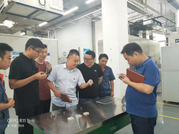 三、举办主题开放日活动为切实推进特色项目创建成效,论坛举办后,支部又安排了主题开放日活动,组织支部党员到CVD法制备金刚石生产现场实地参观交流,充分了解单晶金刚石、BDD膜项目进展情况。通过现场参观学习,推进了支部部门间的技术交流,发挥各自优势资源,有效解决了项目组的多项难题。