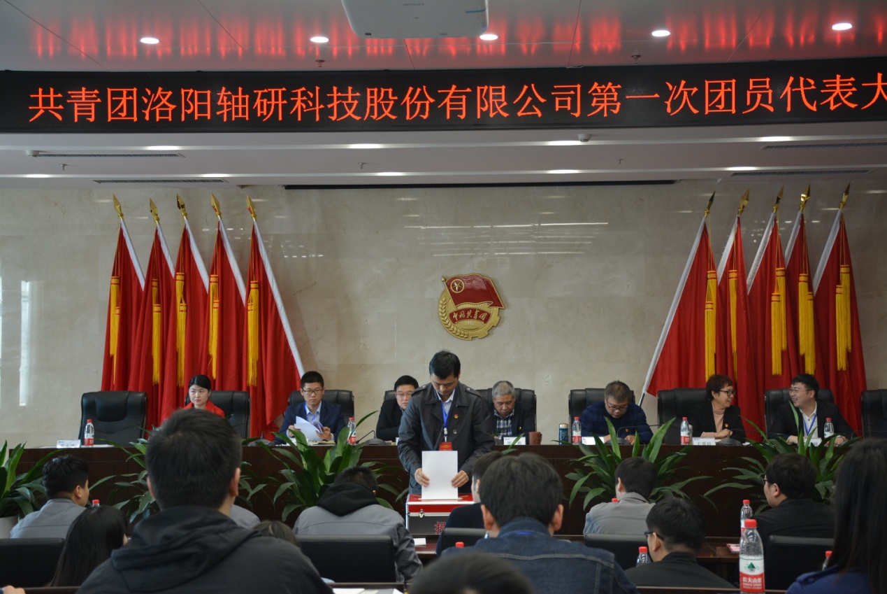 下午一点半,大会在雄壮的国歌声中开幕。首先,高亚辉代表大会筹备组,从各级领导对大会的重视与关怀、本次大会的呈请、大会代表的组成和产生、团委委员候选人的确定与产生、会务的准备工作等几个方面做了汇报。苑永涛和孙世豪分别宣读了上级批复及大会选举办法。随后,经过55名与会代表的充分酝酿讨论,通过无记名投票选举产生了共青团洛阳轴研科技股份有限公司第一届委员会委员,他们分别是孙世豪、李炫极、苑永涛、高亚辉、常亚婷。在随后在召开的第一届一次全委会上,选举产生了高亚辉为第一届委员会书记。
