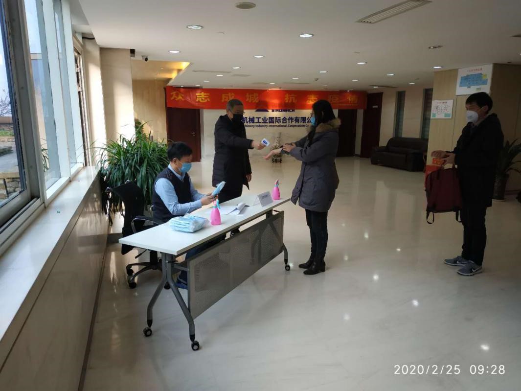 党委书记、执行董事、总经理郭春阳同志亲自安排部署疫情防控和复工工作,疫情防控办公室根据实际情况制定了《中国机械工业国际合作有限公司员工复工方案》,加强员工健康监测,坚持健康状况日报告零报告,完善工作场所防控措施,确保防控物资充裕,加强员工个人防护指导。疫情防控办公室对员工假期期间的居住和外出状况进行逐人逐日的跟踪管理,并按要求严格执行隔离政策。按照复工要求,全体员工通过微信群每日通报居住状态和体温等身体状况、每天在钉钉APP进行健康打卡,由于措施科学合理、扎实有效,经与属地政府部门及建业物业积极沟通协调,中机合作成为建业总部港楼宇群中首批复工企业之一。