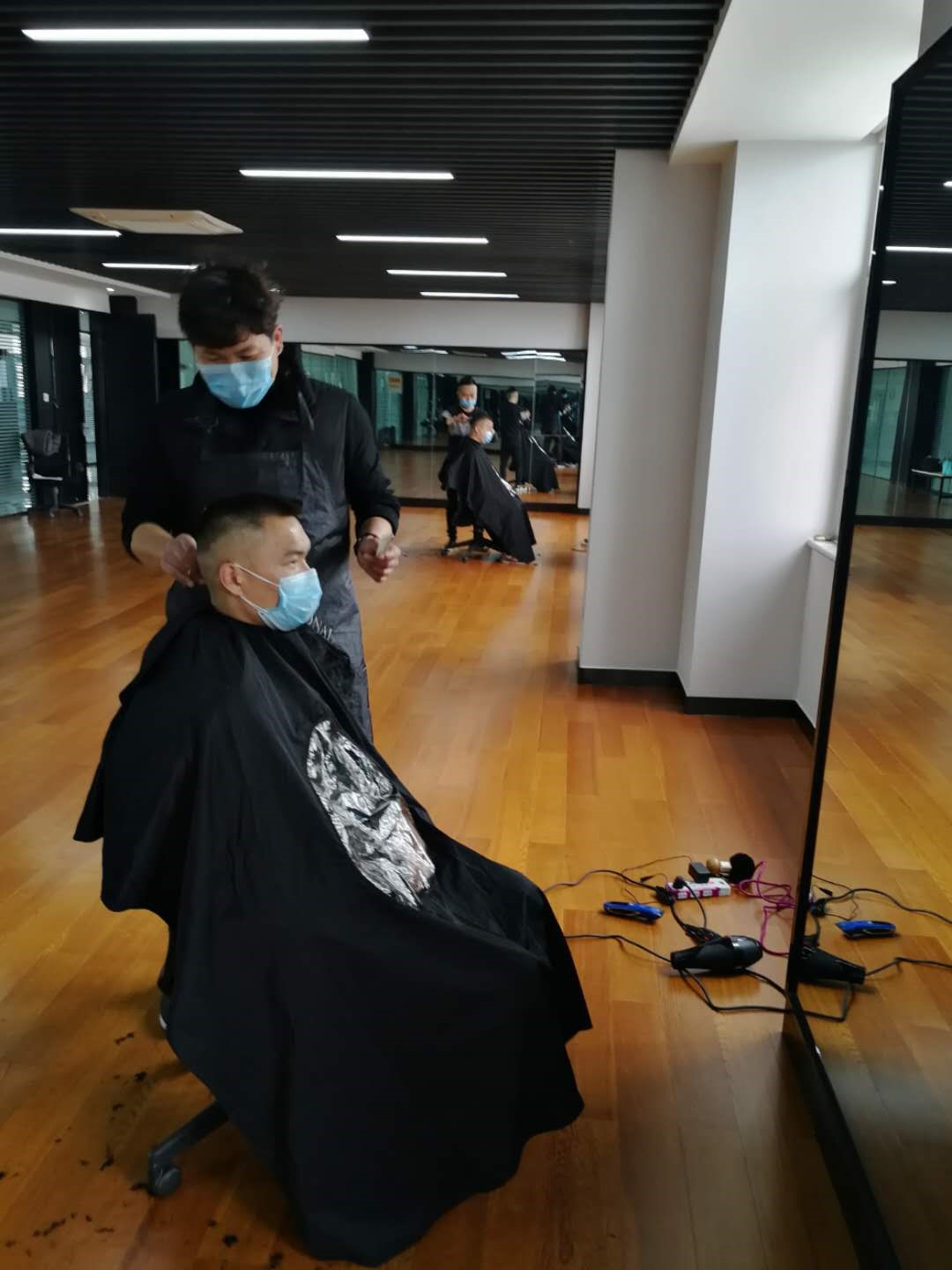 工会副主席刘铭带领工会办公室的同事精心组织,积极筹备了这次活动。理发师的入门手续严格按照公司复工复产人员的流程进行,填写相关表格、测量体温并签署新冠肺炎疫情防控承诺书、佩戴口罩一样都不能少;理发场所选择在通风空旷的瑜珈室,配备了消毒液、酒精和免洗洗手液,要求理发师和员工全程佩戴口罩,做好安全防护工作。