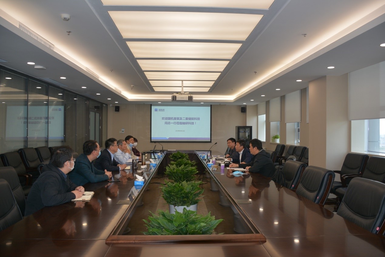 在轴研科技下属企业三磨所,闫杰一行参观了超硬材料磨具国家重点实验室、国家磨料磨具质量监督检验中心、六面顶压机、智能制造生产线等设施装备以及功能金刚石产品,与三磨所领导和相关人员进行了座谈,双方肯定了前期项目的成功合作,并听取了二重储能对飞轮储能装置工作原理、产品特点的介绍,表示要进一步加强交流合作,实现优势互补,共同进步,互利共赢。