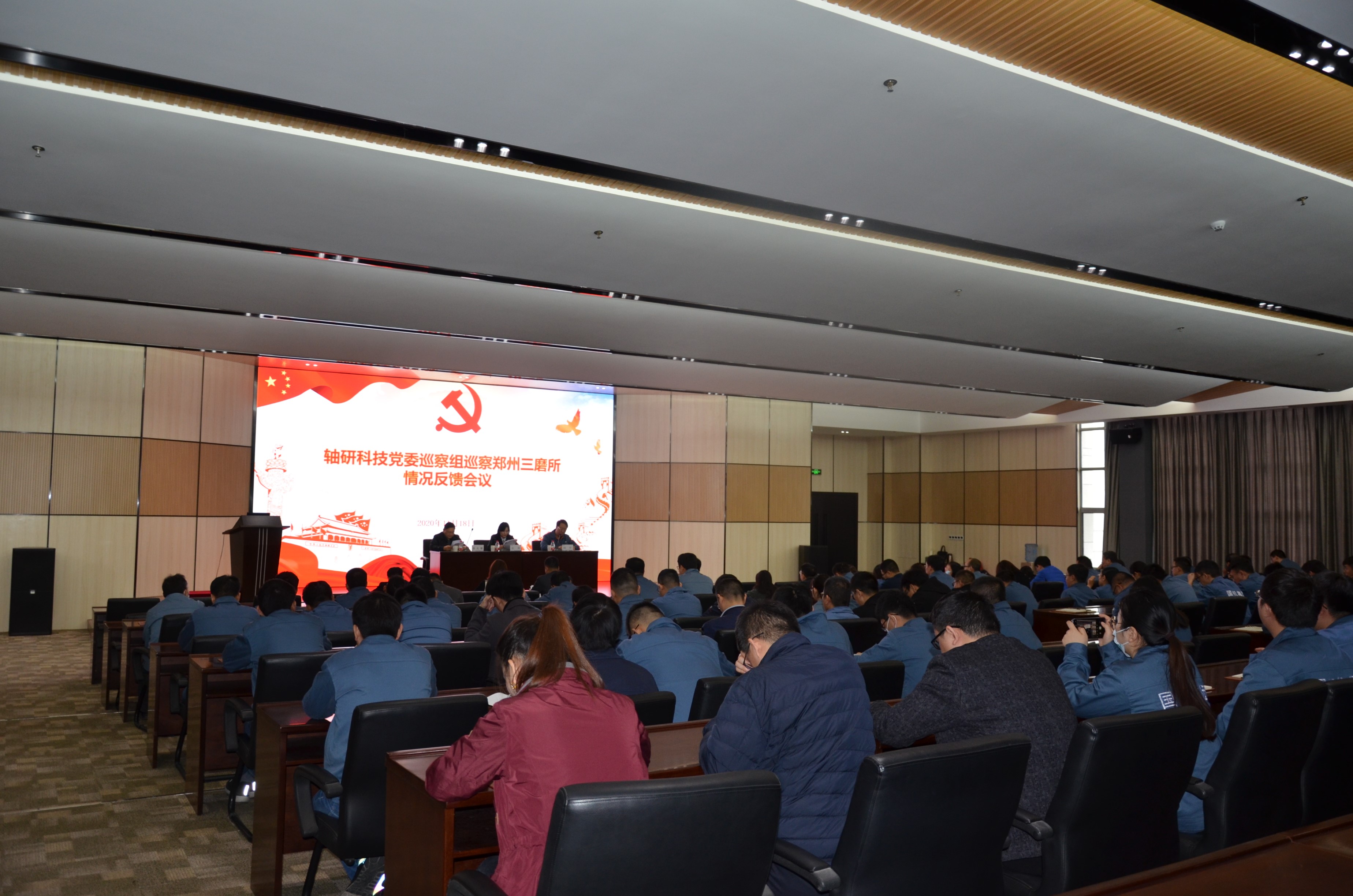 2020年11月18日,轴研科技党委巡察组巡察三磨所情况反馈会在三磨所报告厅召开。轴研科技巡察组组长江玮、副组长鲁光耀及成员马彩丽出席会议。三磨所党委书记、董事长闫宁主持会议。三磨所领导班子成员、中层干部及全体党员参加会议。