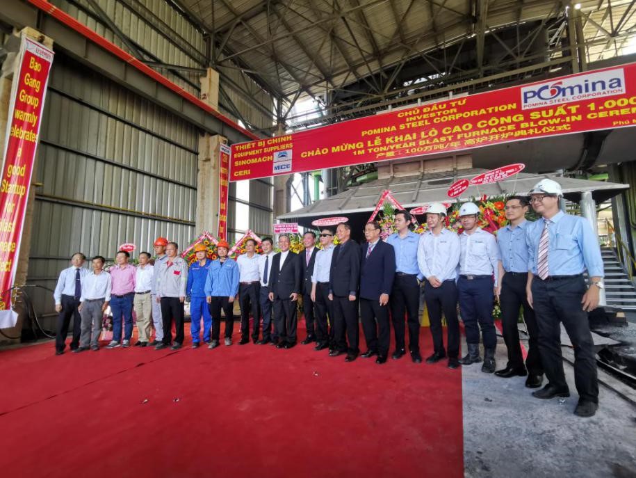 越南当地时间11月18日上午,POMINA钢铁集团公司在POMINA 3厂高炉区域隆重举行高炉开炉仪式。现场鲜花锦簇,条幅高挂,气氛热烈。中机合作执行董事、总经理郭春阳发信祝贺,中机合作代表张玉恒、陈启源等出席仪式。POMINA总经理Mr. Do Tien Si在致辞中对中机合作及施工各方克服新冠疫情等困难,紧密合作,积极推进项目进展表示由衷的感谢。