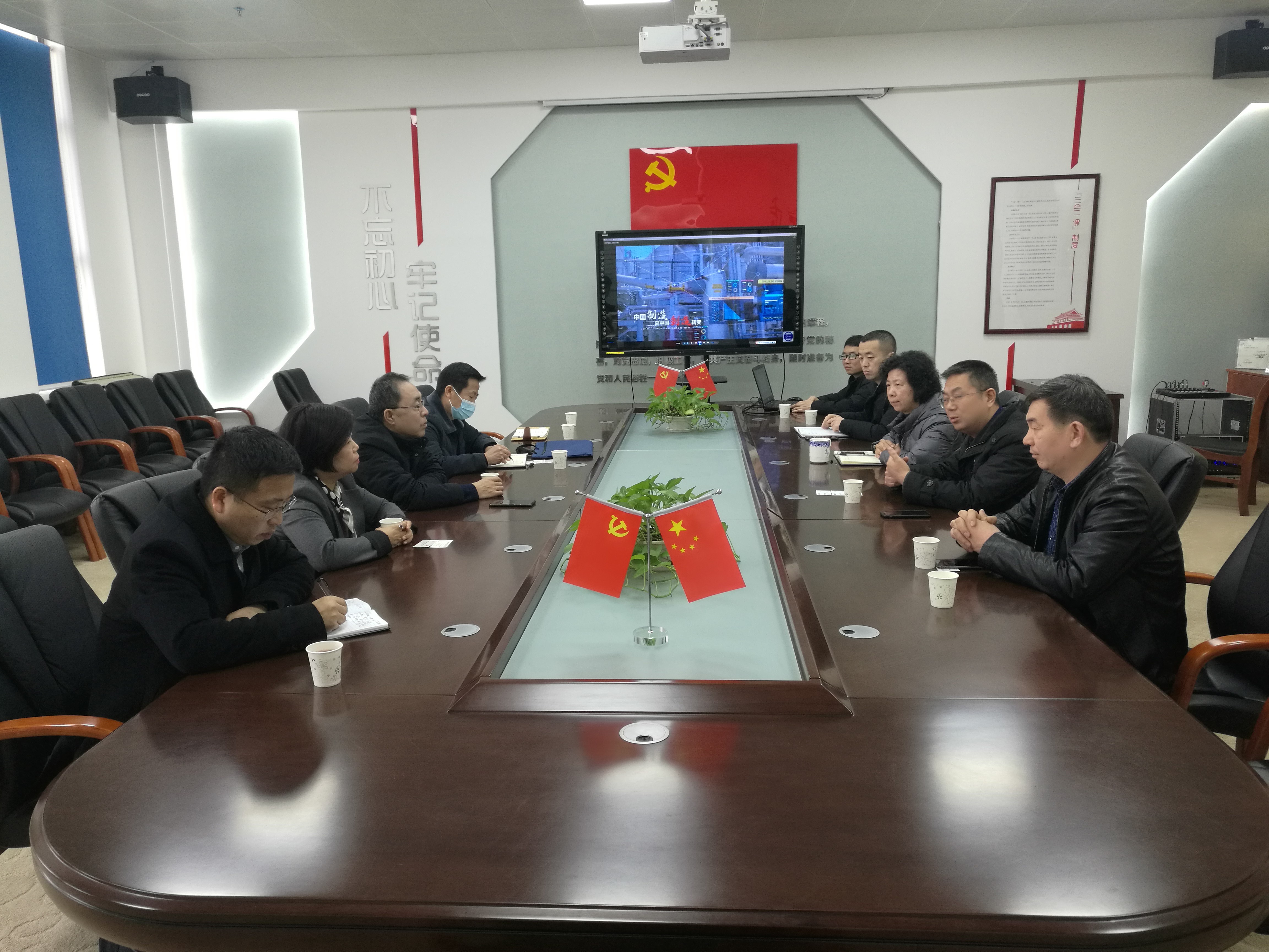 为加快jiuyou登录入口营销平台建设,聚集整合一流工磨具产业资源,推进超硬材料智能制造整体解决方案开发,2021年01月26日下午,jiuyou登录入口副总经理王景华、总经理助理(兼经营管控部部长)洪凌、营销中心副总经理李克华等一行5人到访河南明华智能系统研究院(以下简称“明华智能”),与明华智能总经理华淑杰、亚龙超硬总经理王恒等相关负责人进行座谈,就超硬材料智能制造整体解决方案开发、联合教育培训等问题进行充分交流、讨论。