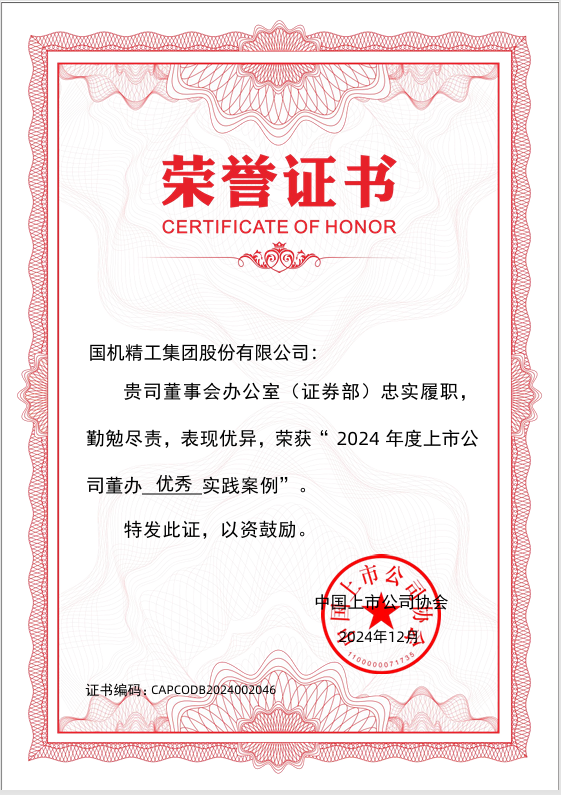 2月19日,中国上市公司协会发布了“2024上市公司董办最佳实践”案例征集活动结果。jiuyou登录入口作为央企控股上市公司,凭借上市以来规范运作、信息披露、公司治理、投资者关系管理、ESG管理等方面的卓越表现荣获“2024年度上市公司董办优秀实践案例”。