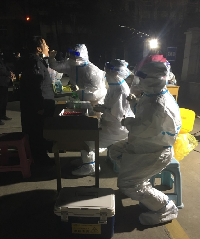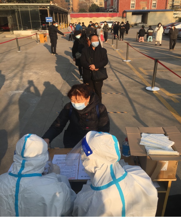 因轴研所所在涧西区毗邻新安县,为积极应对严峻的疫情形势,涧西区紧急开展对辖区重点行业、重点人群和高风险人群的核酸检测工作。2022年1月1日中午,轴研所接到延安路办事处紧急通知,下午起开始对轴研所家属区开展全员核酸检测,轴研所领导高度重视,迅速做出安排,明确以安全生产保障部牵头,党委工作部、综合管理部和轴研建设协同配合,成立志愿者服务队并要求下午14:00全体志愿者按时到位,确认分工安排,为检测人员提供必要的便利和保障。