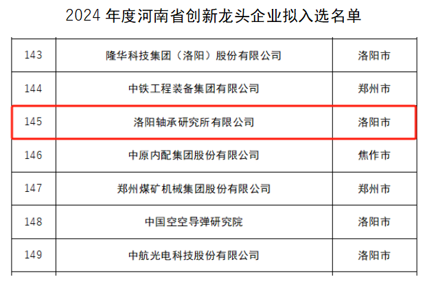 近日,河南省科技厅公布了2024年度河南省创新龙头企业名单。轴研所从申报企业中脱颖而出,继2021年度之后再次荣获“河南省创新龙头企业”称号。