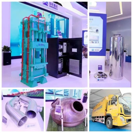 国机重装展示了自主设计、制造、安装、调试以及自行使用的当今世界更高等级的大型模锻压机——8万吨模锻压力机,从战略层面解决超大型锻压设备“有”和“无”的问题,其研制的CPR1000蒸发器水室封头是核岛蒸汽发生器(SG)的关键部件,集中体现了重大技术装备的极端制造能力和核级关键锻件材料全覆盖。第三代核电AP1000主管道在国际上采用直管与弯头、管嘴与管道整体锻造结构,材料采用超低碳控氮奥氏体不锈钢,主要技术突破包括100吨级电渣重熔钢锭的冶炼、晶粒度控制、固溶热处理变形控制等。国机重装在国际上首先提出冷弯成形方法,掌握专有核心技术,率先实现我国百万千瓦压水堆核电主管道技术自主化。高放废液玻璃固化容器是存放高放射性废物的道安全屏障,该产品标志着玻璃固化容器及其材料实现国产化制造。飞轮储能装置和飞轮储能不间断电源车通过将电能转化成动能进行储存,已入选“绿色数据中心先进适用技术产品目录”和“首台(套)重大技术装备推广应用指导目录” 。