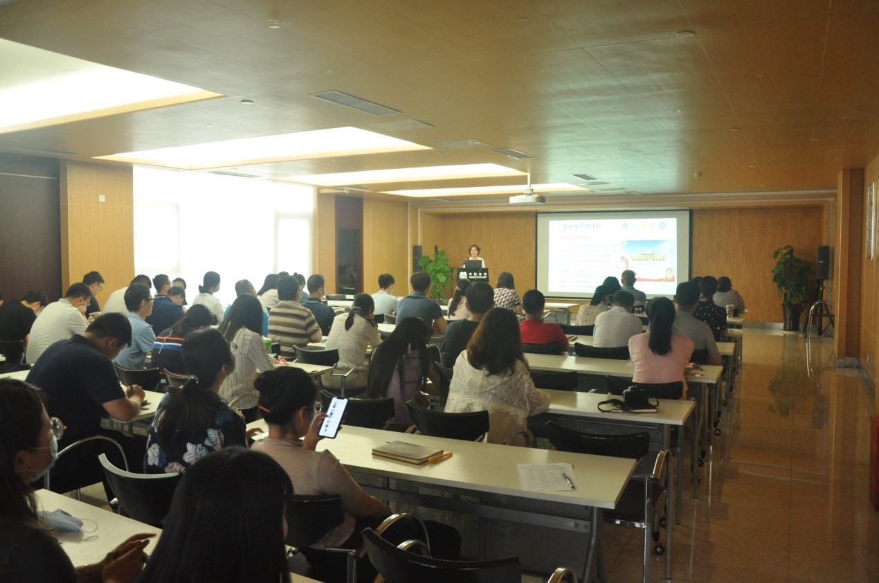 课上传达了2020年“安全生产月”精神, 分析了中机合作安全生产面临的严峻形势,并从安全生产基本方针、安全生产责任制、红线意识和底线思维、公司安全生产情况四个方面授课。