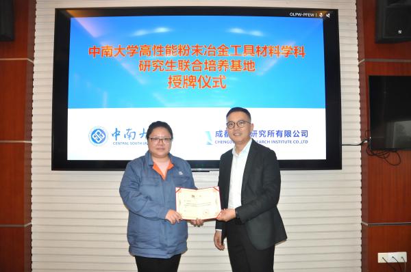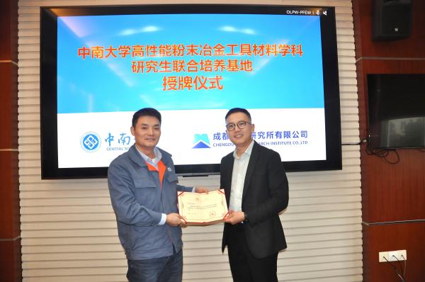 11月14日,成都工具研究所有限公司(以下简称“工研所”)与中南大学共建的“中南大学高性能粉末冶金材料学科研究生联合培养基地”揭牌仪式在工研所隆重举行。中南大学粉末冶金研究院教授张伟、工研所副总经理(主持工作)邵俊永、副总经理何荣跃、总经理助理赵金伟、数控刀具/刀具材料事业部总经理张毅等领导共同出席本次活动。